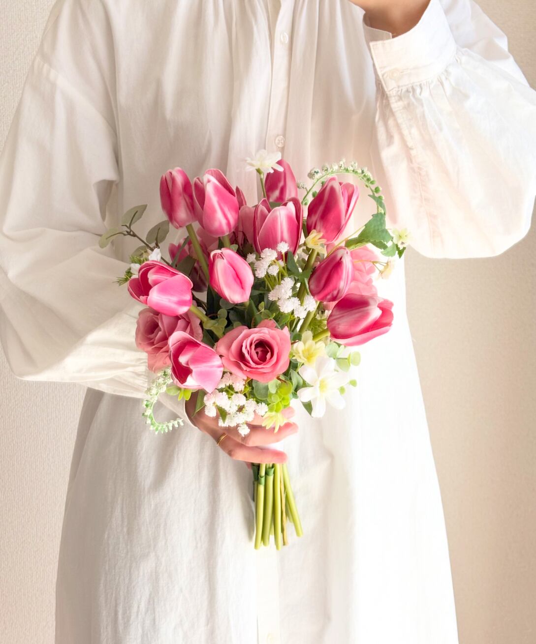 ブーケ1つ持っているだけでたくさんの場面で使用していただけるのが、アーティフィシャルフラワー(高品質造花)の魅力です!